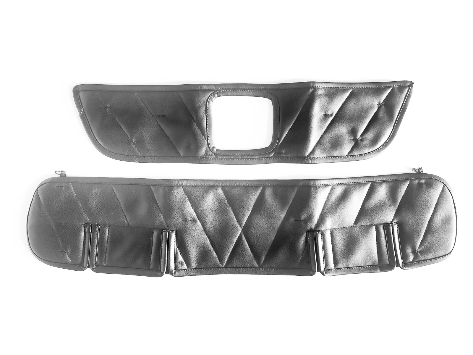 Окантовка по краям утеплителя выполнена полностью из эко-кожи в цвет и в один стиль утеплителя