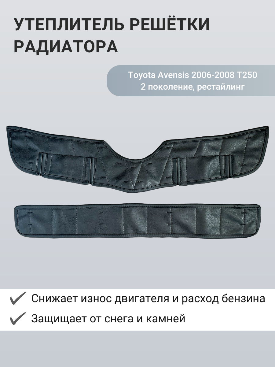 Наличие на решетке радиатора зимнего утеплителя значительно сокращает проникновение потока холодного воздуха в подкапотное пространство, тем самым ускоряя процесс нагрева двигателя Не требует демонтажа при мойке автомобиля Защищает решетку радиатора от попадания камней и снега Состав: 3 слоя: - экокожа -полиплопилен -окфорд 259d Крепёж: Резинки + крючки в оплетении, не царапают краску
